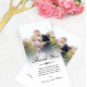 Fotokarte personalisiert mit Ihrem eigenen Hochzeitskino Foto. Vielen Dank in einem eleganten Holzkohleskript über einer persönlichen Nachricht an Ihre Hochzeitsgäste geschrieben. Der Rand zwischen Foto und Text der Hochzeit wird durch einen weißen Farbverlauf gemildert. Gib auch deine Namen!