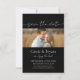 Elegantes Script Save the Date Monogram Einladung. Dieses einladende Foto verbindet schlichte Eleganz mit minimalistischem Design mit einem Foto, um Ihren besonderen Tag zu begehen. Monogramm auf der Rückseite und minimales Schwarz-Weiß-Design für Ihre Hochzeit, Jubiläum oder besondere Anlass.