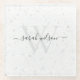 Elegantes Script Terrazzo Stone Ivory Gray Monogra Glasuntersetzer