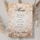Elegantes Script Wedding Rose Gold Bokeh Lights Menükarte