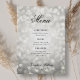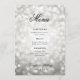 Elegantes Script Wedding Silver Bokeh Lights Menükarte