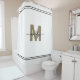 Personalisiertes, benutzerdefiniertes Script White Gold Monogram Name Feminine Shower Vorhang. Dieser schicke Duschvorhang verleiht jedem Badezimmer eine luxuriöse Touch, die auf einem knalligen, weißen Hintergrund eine individuelle Monogramm-Gestaltung aufweist. Mit einem fett grauen Anfangsbuchstaben und einem fließenden schwarzen Skriptnamen wird das Design mit zwei weißen Streifen oben und unten für ein raffiniertes Detail betont. Alle Farben sind vollständig an Ihren Stil und die Gestaltung des Badezimmers angepasst. Dieser mit Monogramm Duschvorhang ist perfekt für Hochzeiten, Hauswärme oder Geburtstage geeignet und verbindet den Stil mit praktischer Eleganz.