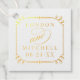 Diese Gastgeschenk Hochzeiten mit Goldfolie (oder Silberfolie) zeichnen sich durch ein individuelles Monogramm der Braut- und Bräutigam-Namen und das Hochzeitdatum aus, gerahmt durch ein elegantes Quadrat-Scrollbild-Design auf der Vorderseite. Auf der Rückseite ist Platz für ein vollfarbiges Foto vorhanden - ideal, um ein beliebtes Foto der Verlobung des Paares anzuzeigen.
