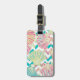 Dieses elegante Gepäckanhänger mit Imitat Glitzer, bunten Muscheln in verschiedenen Farben aquamarin, Korallenrosa, Aqua und Gold. Die Muscheln sind auf aquablau Zickzack Streifen platziert, die auch Bilder der Muschel Muster enthalten, und diese sind mit weißen Zickzack Streifen kontrastiert. Die Rückseite des Tags weist das gleiche Maschenmuster auf, jedoch mit einem entsprechenden aquamarinen Block am Ende, der den benutzerdefinierten Text in Weiß enthält. Sie können die Textzeilen verwenden, um Ihre bevorzugten Informationen anstelle des Beispiels einzufügen. Hübsch!