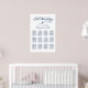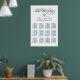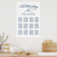 Das elegante kalligraphische Skript Hochzeitsstempelposter-Design enthält ein Monogramm der Braut- und Bräutigamen, das Hochzeitsdatum und den benutzerdefinierten Vorlagentext für zwölf (12) Tischnummern mit Gästennamen. Navy Blau und Weiß Farbschema kann so geändert werden, dass es mit Ihren Hochzeitsfarben abgestimmt wird.