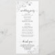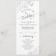 Dieses wunderschöne Hochzeitsprogramm zeichnet sich durch ein elegantes Design mit dunkelgrauem Text auf weißem Hintergrund und silbergrauen Imitat-Folienrollen und Wirbel in den Ecken aus. Die Titel sind in extravaganter Schrift-Kalligraphie geschrieben, und es gibt Platz für Ihre Zeremonie und Hochzeitsfeier Details, sowie ein kurzes Dankeschön für Ihre Gäste. Ein wunderbarer Weg, um Ihre Freunde und Familie zu Ihrer Hochzeitsfeier zu begrüßen.