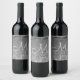 Eleganter Hochzeitsfavorit des Empfangs. Hübsches, silbergraues, blumeneinfarbiges Monogramm-Muster für individuelle Weinflaschen. Chic, modern, trendig, elegant, stilvoll, schön und elegant metallisch. Klicken Sie zum Anpassen des Skripts auf Design bearbeiten. Bildrecht Marg Seregelyi Fotografie.