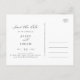 Dieses elegante Skript Ankündigung Datum freihalten Postkarte ist perfekt für eine einfache Hochzeit. Das minimalistische Schwarz-Weiß-Design besticht durch extravagante romantische Typografie mit modernem Glam-Stil. Anpassbar in jeder Farbe. Behalt das Design minimal und elegant, wie es ist, oder personalisiere es durch Hinzufügen von eigenen Grafiken und Kunstwerken.