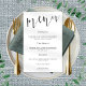 Elegantes Skript beliebiges Farbhochzeitsmenü. Dieses moderne Design hat Menu in elegantem Set-Skript an der Spitze und die Erholung des Textes zentriert unten, die Sie leicht personalisieren können. Text- und Hintergrundfarben können über die Option Bearbeiten in eine beliebige Farbe geändert werden.