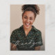 Dieser ein Foto Abschluss danke Ihnen postcard ist eine großartige Möglichkeit für Ihren Absolvent zu zeigen Wertschätzung für Geschenke und Unterstützung. Mit einem modernen und eleganten Drehbuch "Danke" in Weiß auf einem senkrechten Foto, bietet dieses Design auch Raum für Personalisierung inklusive Name oder anderem Text. Die Rückseite der Postkarte hat Platz für Ihren eigenen Text, der auch leer verlassen werden kann, um eine handgeschriebene Nachricht zu ermöglichen. Dieser stilvolle Abschluss dankt Ihnen, dass Sie gut für einen Gymnasialabsolventen oder einen Uni-Absolventen arbeiten und ist auch für andere Anlässe einfach genug. Matching Graduation Ankündigungen und Einladungen in der Sammlung von Lea Delaveris Design.