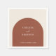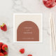 Verwandeln Sie Ihre Rezeptionstischdekoration in einen zusammenhängenden, durchdacht gestalteten Raum mit diesen eleganten, minimalistischen personalisierten Hochzeitsservietten. Jede moderne Serviette zeigt einen boho-terrakottafarbenen Bogen auf neutralem beigem Hintergrund, wobei die Namen des Brautpaares und das Hochzeitsdatum elegant in zarter Life-Roman-Schrift-Typografie im Inneren gedruckt sind.
