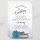 Diese Hochzeitsprogramme sind elegant und geschmackvoll, aber dennoch preisgünstig. Die Einrichtung besteht aus einem Single, der lang gesteppt und blau, türkisblau oder azurblau ist und in einem Wasserbecken mit Wellen und Wellen reflektiert wird. Die Typografie zeigt eine laky schwarze Schriftzeichen-Kalligraphie, und es gibt Raum für Details über die Zeremonie, das Brautparty, und ein kurzes Dankeschön.