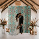 Eleganter Kupfer- und Türkisfarbener floraler Hintergrund Erschaffen Sie einen atemberaubenden Brennpunkt mit der eleganten Kupfer- und Türkisfarben-Formgebung, einem digital bearbeiteten AI-Design, das komplexe Blumendetails mit raffinierten Kupferakzenten auf einem türkisfarbenen Hintergrund verbindet. Diese atemberaubende Kulisse ist die perfekte Ergänzung zu Hochzeitsfeiern, Empfängen, Fotos, Sweetheart Tischen und großen Eingängen, die Ihrem Event eine Touch zeitloser Eleganz verleihen. Dieses Ambiente, das für formale, boho, rustikale und Hochzeiten in Urlaubsort konzipiert ist, verleiht Ihrem Ort eine luxuriöse und dennoch raffinierte Ästhetik. Ob Sie es als zeremoniellen Hintergrund, Dekoration oder Fotografie nutzen, es schafft eine unvergessliche und bildliche Atmosphäre für Ihren besonderen Tag.