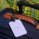 Modernes und stilvolles Gepäckanhänger-Design mit pastellfarbenem Hintergrund und Ihren Initialen.
