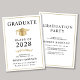 Elegante Uni-Abschluss-Ankündigung und Party Einladung mit einem goldenen Graduiertencap und schlichter moderner Typografie für den Namen des Absolventen, Jahrgang, Uni oder Universität, Abschluss und Dur oder Ehre. Fügen Sie auf der Rückseite die Details zum Abschluss hinzu.