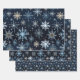 Elegantes Vintage Blaues Schneeflockenmuster Geschenkpapier Set