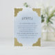 Diese elegante Hochzeitsdetails-Karte zeichnet sich durch einen weichen, pulverblauen Hintergrund mit verzierten goldenen Blumenecken-Akzenten aus und passt perfekt zu unserer passenden UAWG- und Einladungssuite. Die stilvolle Mischung aus modernen Drehbüchern und klassischen Serif-Schriftart verleiht dem Hotel eine raffinierte Touch und eignet sich ideal für die gemeinsame Nutzung von Unterkunft und Hochzeitswebsite-Informationen. Passen Sie Ihre personalisierten Veranstaltungsdetails an, um ein nahtloses Gasterlebnis zu gewährleisten.