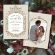 WEINROT BURGUNDY UND GOLD SAVE THE DATE MIT FOTO | Das ist ein fabelhaft verzierter, vergoldeter Barockstil-Look über einem dezenten feuchthaften rot-bordeauxfarbenen Hintergrund. Ihr Verlobung Foto ist schön gerahmt auf der Rückseite. Das Kunstwerk wurde von Audrey Jeanne Roberts, einem international anerkannten Künstler, grafisch entworfen. ©