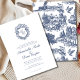 Diese zeitlose Vintage Wappen-Hochzeitseinladung besticht durch ein elegantes mit Monogramm Wappen, zarte Blumendetails und klassisch blau-toilinspiriert Akzente. Die raffinierte Typografie und die raffinierte Gestaltung machen es zu einem idealen Ort für romantische, französische Landschaften oder traditionelle Hochzeiten. Vollständig anpassbar für Ihren besonderen Tag!