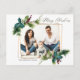 Elegantes Weihnachts Holly Pine Frame Foto Gruß Postkarte