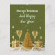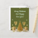 Eine festliche Illustration mit einem goldenen Weihnachtsbaum mit Ziergegenständen, umgeben von dekorativen Schneeflocken und festlichen Elementen, Set vor einem dunkelgrünen Hintergrund, das Wärme und saisonale Freude hervorruft.