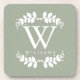 Elegantes weises Grün-Monogramm Untersetzer