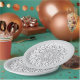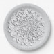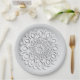 Moderne, weiße Papiermandala auf schwarzer Papierplatte.