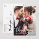 Elegantes White Script Wedding Foto Vielen Dank Postkarte