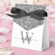 Girly Modern Elegant White und Silver Glitzer Monogram Initial Name Signature Script Custom Personalisiert Gevor Box. Dieses Design mit Ihrem Vornamen in einem hübschen handgeschriebenen Stil Swash Schwanz Schriftart Signatur Typografie (oder Kalligrafie) mit Monogramm Initial, über Imitaten silbergraue Farbe Glitzer Block auf weißem Hintergrund. Diese stilvollen weiblichen Geschenkboxen, die sich hervorragend zum Verteilen eignen, Geschenke, Gast-Geschenke und Leckereien während einer bevorstehenden Geburtstagsparty, GRILLEN, süßen 16 Geburtstag, Babydusche, Hochzeitsempfang, Junggeselinnen-Abschied, Brautparty, Jubiläum und vieles mehr.