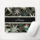 Personifizieren Sie diese Mausunterlage mit Ihrem Namen oder anderem Text. Ausrüstungsbeschreibungen ein Fraktalkunstblumenentwurf mit dem Weiß, Pfirsich, aquamarin und schwarze Farben.