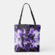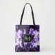 Personalisieren Sie Ihre Eingabe und Ihren Namen. Überall druckt Totbeutel mit Elektrischer lila funkelnd Dreieck Flamme. Lila, schwarz-weiße Dreieck geometrische Masche mit abstraktem Rauch und Glitzern bedruckt.