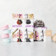 Gitarren-Musik-Thema. Illustrierte Zeichnungen einer Akustikgitarre und zwei elektrischer Gitarren werden in den verschiedenen Positionen gekennzeichnet, overtop vom bunten Musiknoten in Orange, in Lila und in Grauem und ein musikalisches Personal Kurvens. Alles Gute zum Geburtstag wird an der Unterseite in Lila geschrieben. Die Instrumente, die Musiksymbole und die Geburtstagsbenennung wird dann als ganz vorbei Musikmuster wiederholt. Benennung kann geändert werden oder gelöscht werden, um schlicht zu verlassen. Musiker, Band-Mitglied, Rocker, Gitarrist oder jeder möglicher Musikfreund sind eine perfekte Ergänzung für diesen Entwurf.