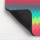Dieses Bild weist ein geometrisches, sich wiederholendes Rautenmuster mit dynamischen, horizontalen Farbstreifen auf. Das Muster wechselt zwischen aquamarinen blauen, kalkgrünen und rötlich-rosa Bändern, wobei sich überlappende Diamanten einen modernen und energetischen Effekt erzeugen. Die konsistenten Winkel und Symmetrien bieten sowohl ein Retro- als auch ein zeitgemäßes Ambiente, wodurch das Design visuell dynamisch wird.