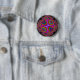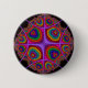 Ein Knopf, der einen psychedelisch hued vierseitigen Entwurf mit den konzentrischen Medaillons Zurücktretens ausstrahlen von der Mitte kennzeichnet.