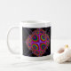 Ein Entwurf, der psychedelische multihued unregelmäßige konzentrische Medaillons innerhalb eines Vierecks kennzeichnet, veined Rahmen.