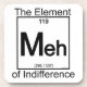 Die Wissenschaft hat eine neue Chemikalie im Periodensystem abgeschieden - das Element der Gleichgültigkeit, abgekürzt als MEH. Diese gemeinsame Substanz zeigt sich als verbaler Schulterzucken, wenn es Ihnen einfach egal ist. Chemie für die Massen - ein perfektes Geschenk für ... was auch immer.