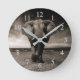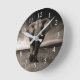 Diese Acrylwanduhr zeigt ein Foto eines Elefanten, der auf einem Strand spaziert.
