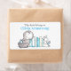 Whimsical Illustration zeigt Elefantenlesen und sonniges Lesen an den gegenüberliegenden Enden der Buchsammlung. Personalisierter Name im hellblauen Schriftart