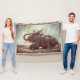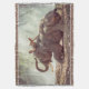 Eine geflochtene Decke zeigt einen jungen Asiaten, der auf dem Rücken eines großen, sich zurücklegenden Elefanten liegt und ein Buch liest. Der Junge ist ohne Hemden und trägt kurze Hosen und braune Schuhe. Der Elefant ist grau mit langen Stoßzähnen und liegt auf einem Blätter. Der Hintergrund ist eine verschwommene Waldszene. Die Decke hat einen Rand. Das Bild wird mit weicher, diffuser Beleuchtung aufgenommen, was ihm ein warmes, nostalgisches Gefühl verleiht.