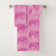 Serviette sertie dans un média mixte graphique numérique d'un éléphant contre un arrière - plan en carrelage arabesque - teintes rose du rose pâle au fuchsia profond