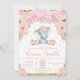 Eléphant Floral Baby shower Invitation fille