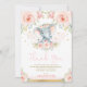 Cette adorable invitation au baby shower présente des fleurs douces et délicates et un joli petit éléphant portant une élégante couronne de fleurs.