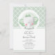Unisex invitation à la douche bébé avec un adorable petit éléphant, arborant un petit noeud menthe jaunty sur la tête contre un arrière - plan motif en diamant blanc et menthe. CORRESPONDRE des articles dans notre magasin.