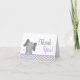 Un carte de remerciements de baby shower moderne gris et violet bleu pastel à thème pour éléphants. Parfait pour un petit baby shower de fille.