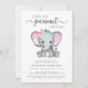 Eine niedliche Babydusche-Einladung mit "A Sweet Little Peanut Is On Your Way" in einer Mischung aus sanft grauer, moderner Typografie und einem stilvollen Drehbuch sowie einer pastellrosa Aquarellfarbe eines Babyelefanten. Personalisieren Sie den Namen der Mutter und die Babydusche Details in schlichter grauer Typografie.