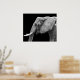 Abgeschiedene Fotografie eines afrikanischen Elefanten in Schwarzweiß auf schwarzem Hintergrund.