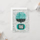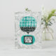 Eine lustige Elefantenillustrierung mit türkisfarbenen Punkten, schwarzem Akzent mit Kreuzen und einem ovalen Aqua - alles auf einem hochstrukturierten weißen Hintergrund.