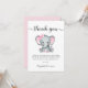 Douche bébé fille mignonne ou saupoudrer de carte de remerciements avec "merci" dans un élégant script gris doux avec des swashes et une aquarelle rose de bébé éléphant. En dessous, vous pouvez facilement personnaliser votre message de remerciement en simple topographie grise ou laisser vide pour une note manuscrite.