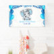 Bannière super mignonne de baby shower/anniversaire avec Watercolor Baby Boy Elephant avec une couronne bleue royale d'argent - avec parties scintillant bleue et ballons pour un petit Prince!