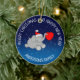 Niedlicher Elefant mit rotem Hut und Tasche mit Weihnachtsgeschenken über blauem Hintergrund mit weißen Schneeflocken